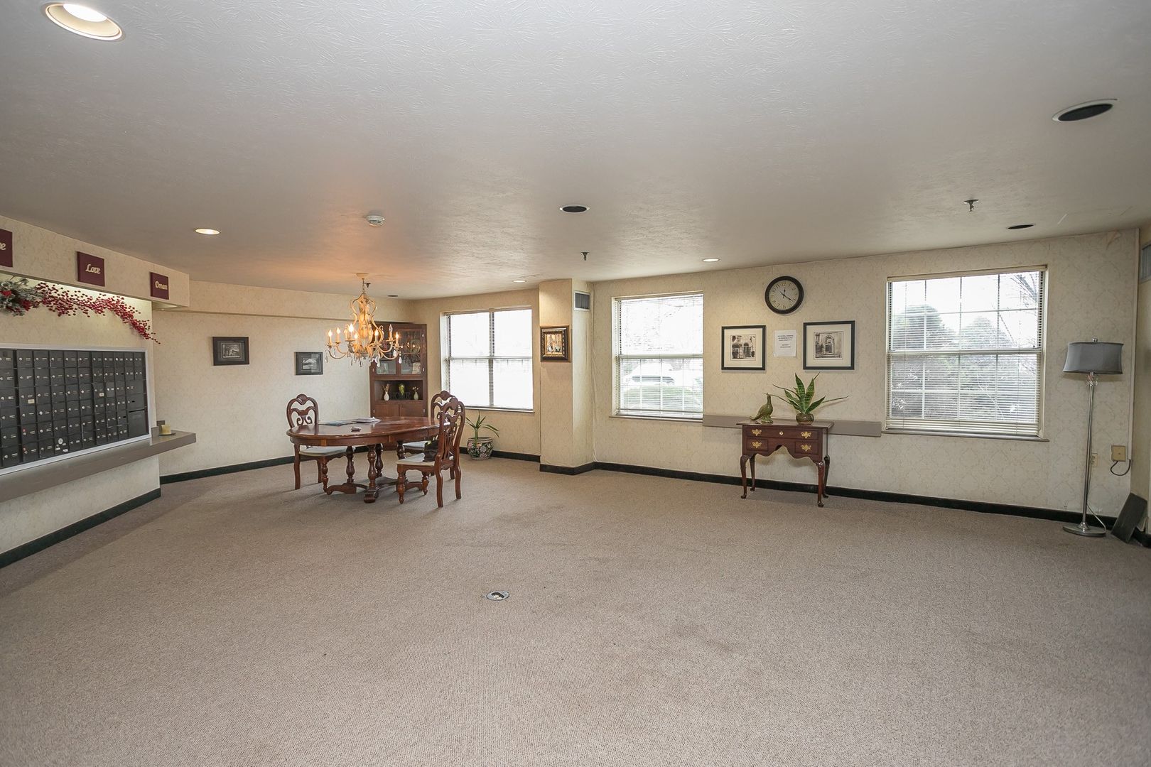 - Centrally located, indoor mailboxes
