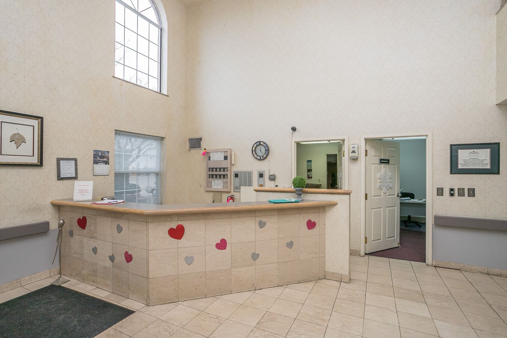 - Centrally located, indoor mailboxes