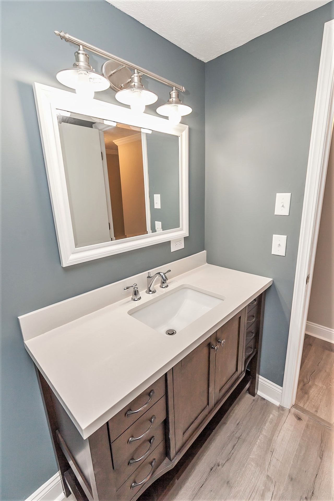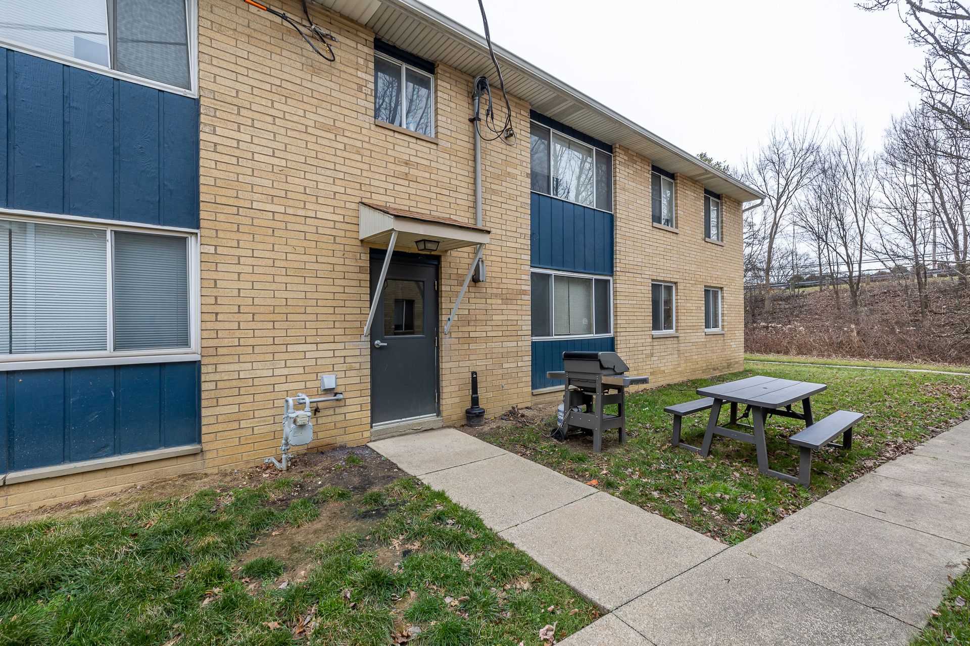 - Interior Paint: Modern gray and blue theme covering all walls, ceilings, trim, and doors.